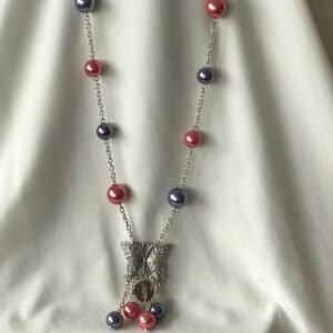 Purple and Pink Glass Pearl Butterfly Chain Necklace