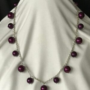 Purple and Pink Glass Pearl Butterfly Chain Necklace