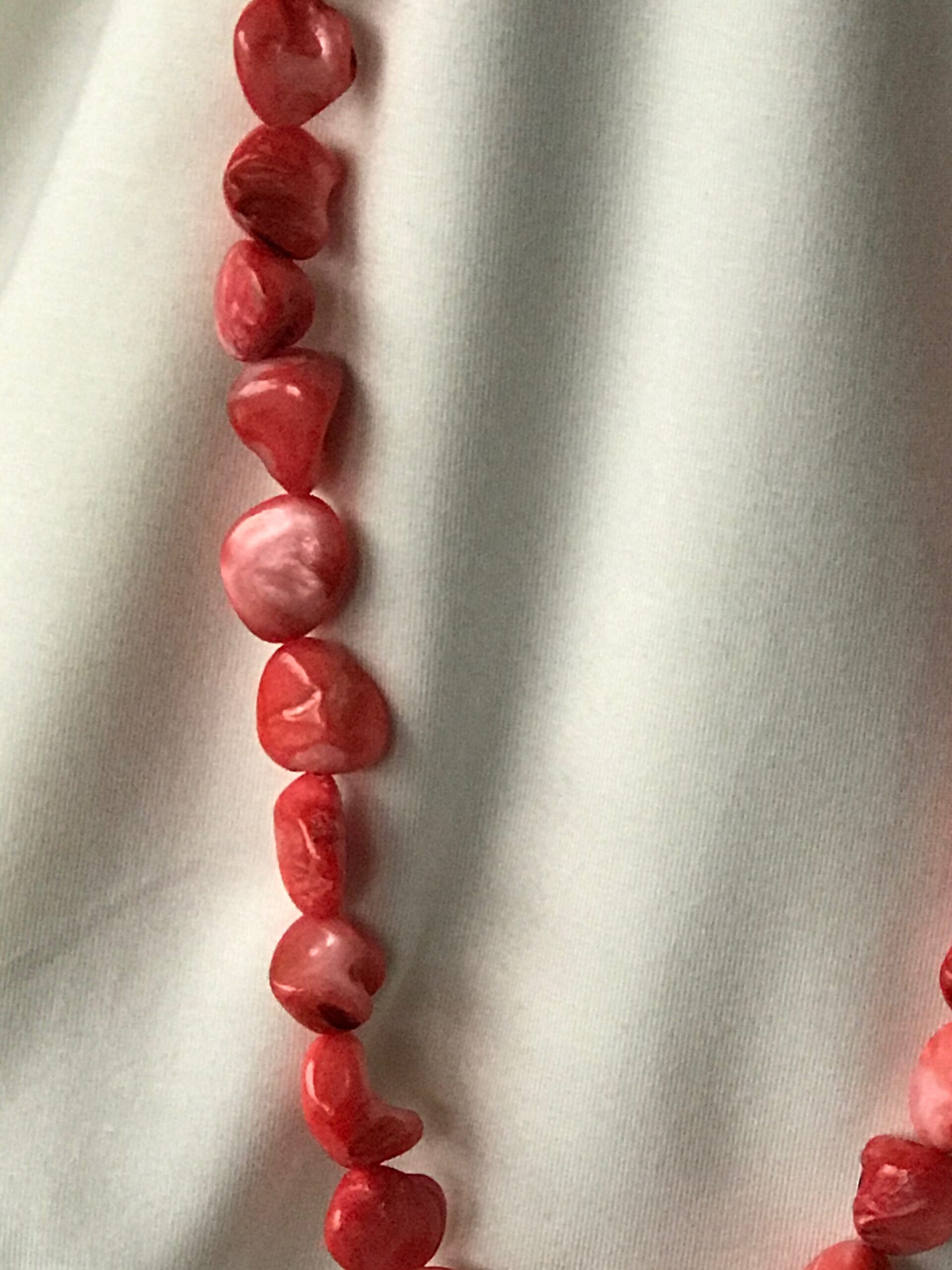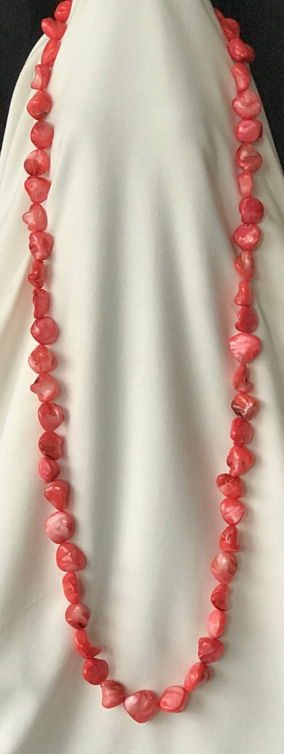 Peachy Coloured String Necklace made from Freshwater Keshi rough pearls.