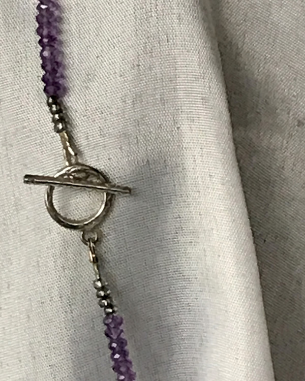 Composition: Sterling Silver Toggle with Faceted Flat Amethyst in 2 sizes with chips. All Semi-Precious gem beads.