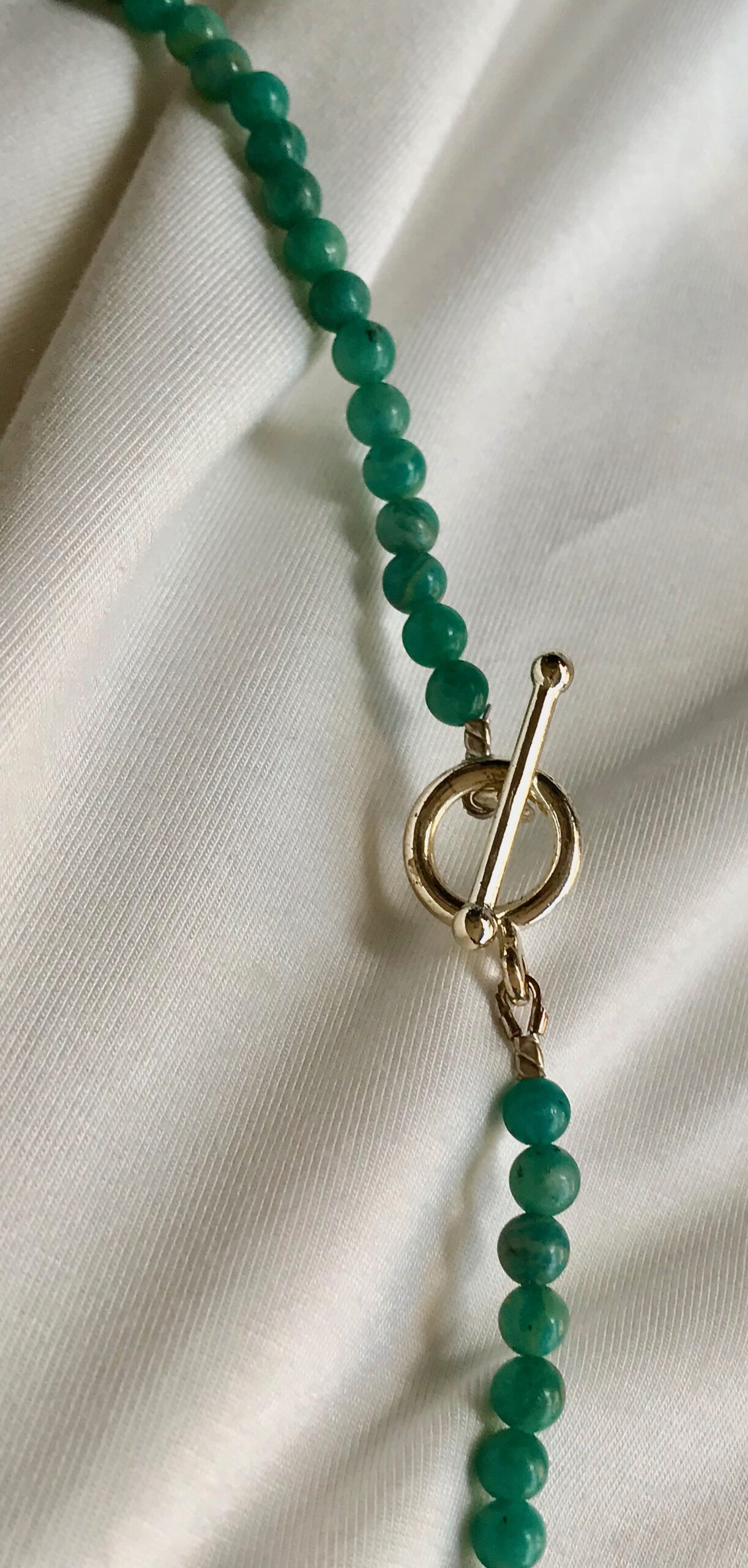 Mint Burmese Jade mixed with Aventurine beads, just to give it a darker shade.