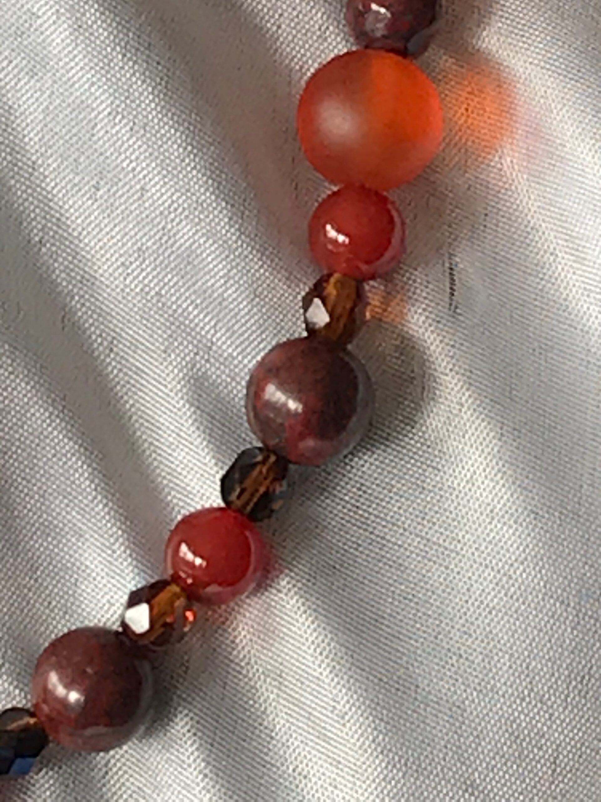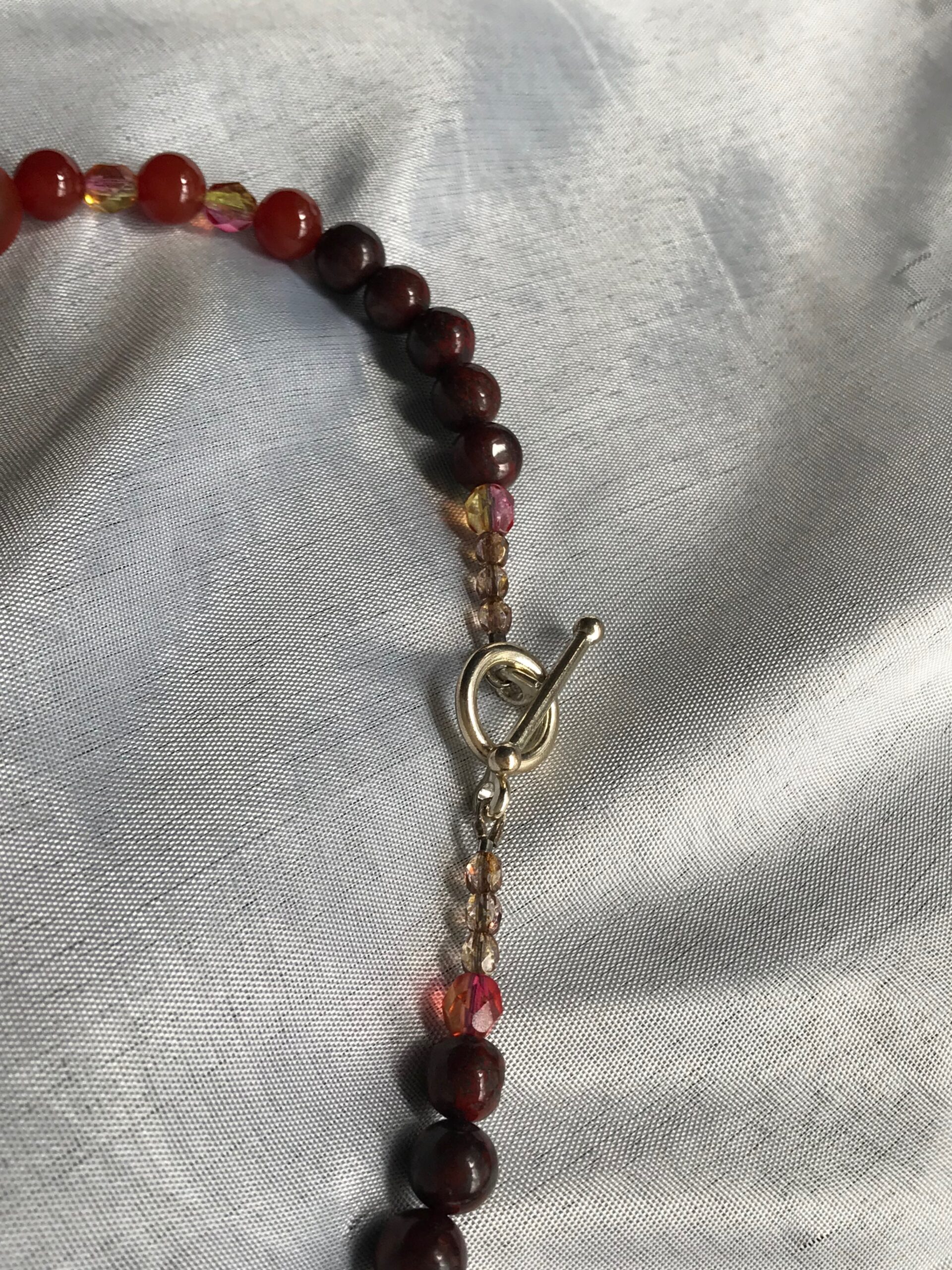 Composition: Stainless Steel Toggle Clasp with Amber based bicone glass beads.