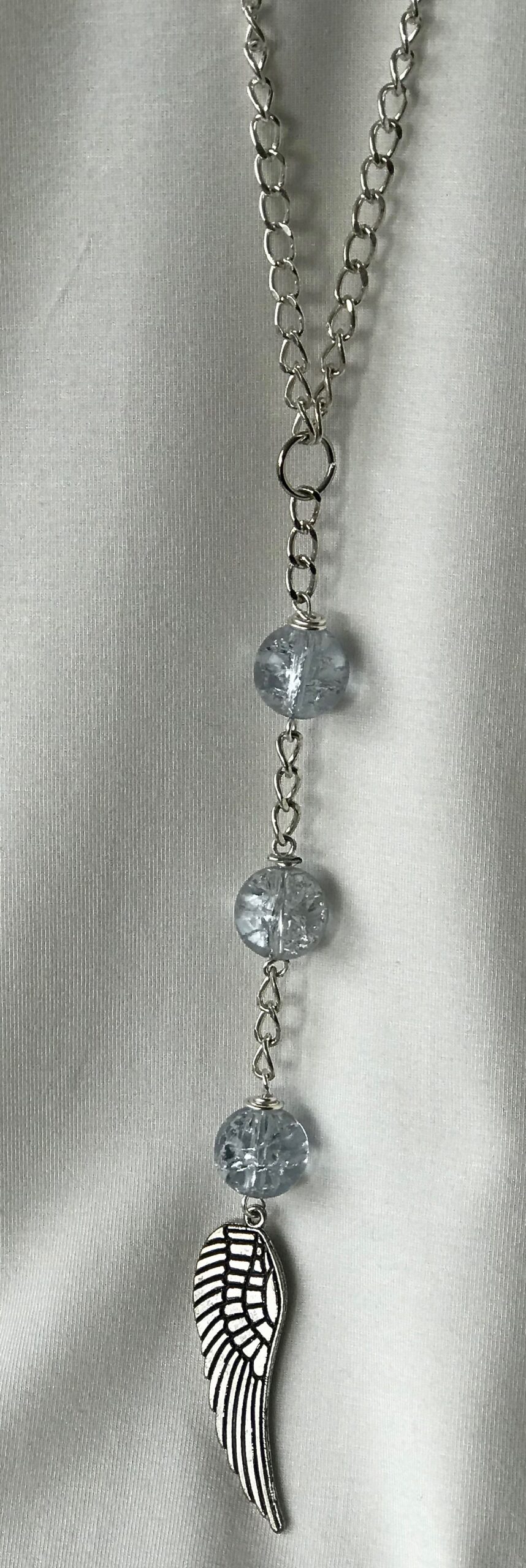 Composition: Crackled beads. Heaven Wing. Stainless Steel chain with Lobster Clasp.