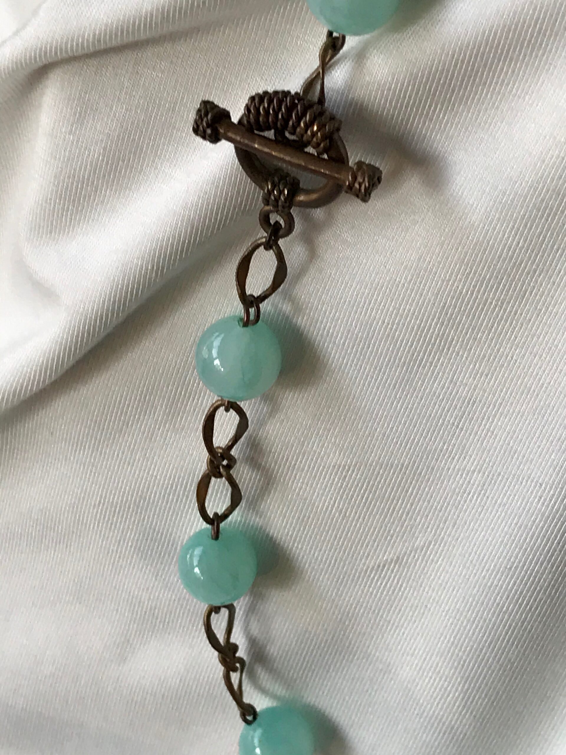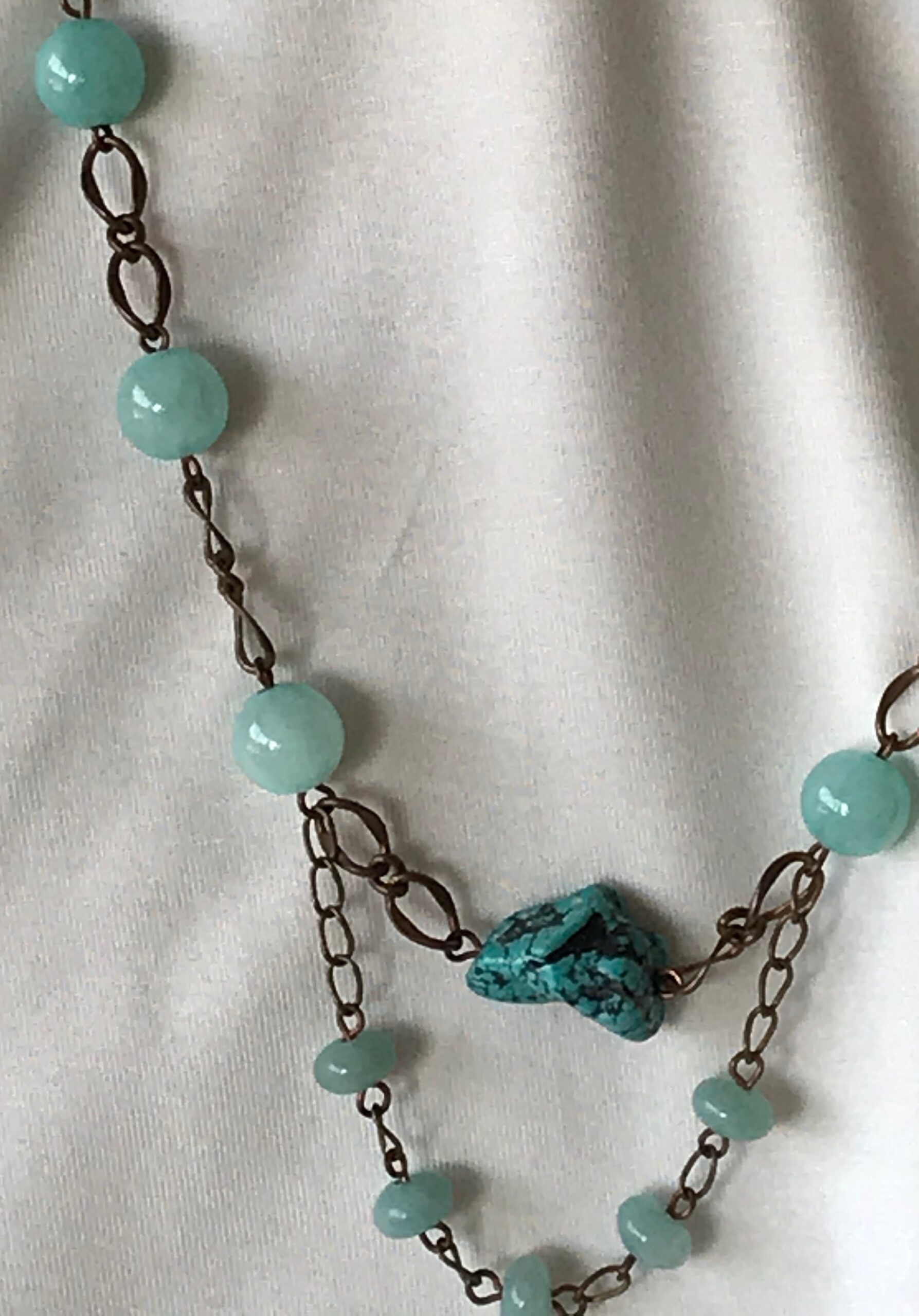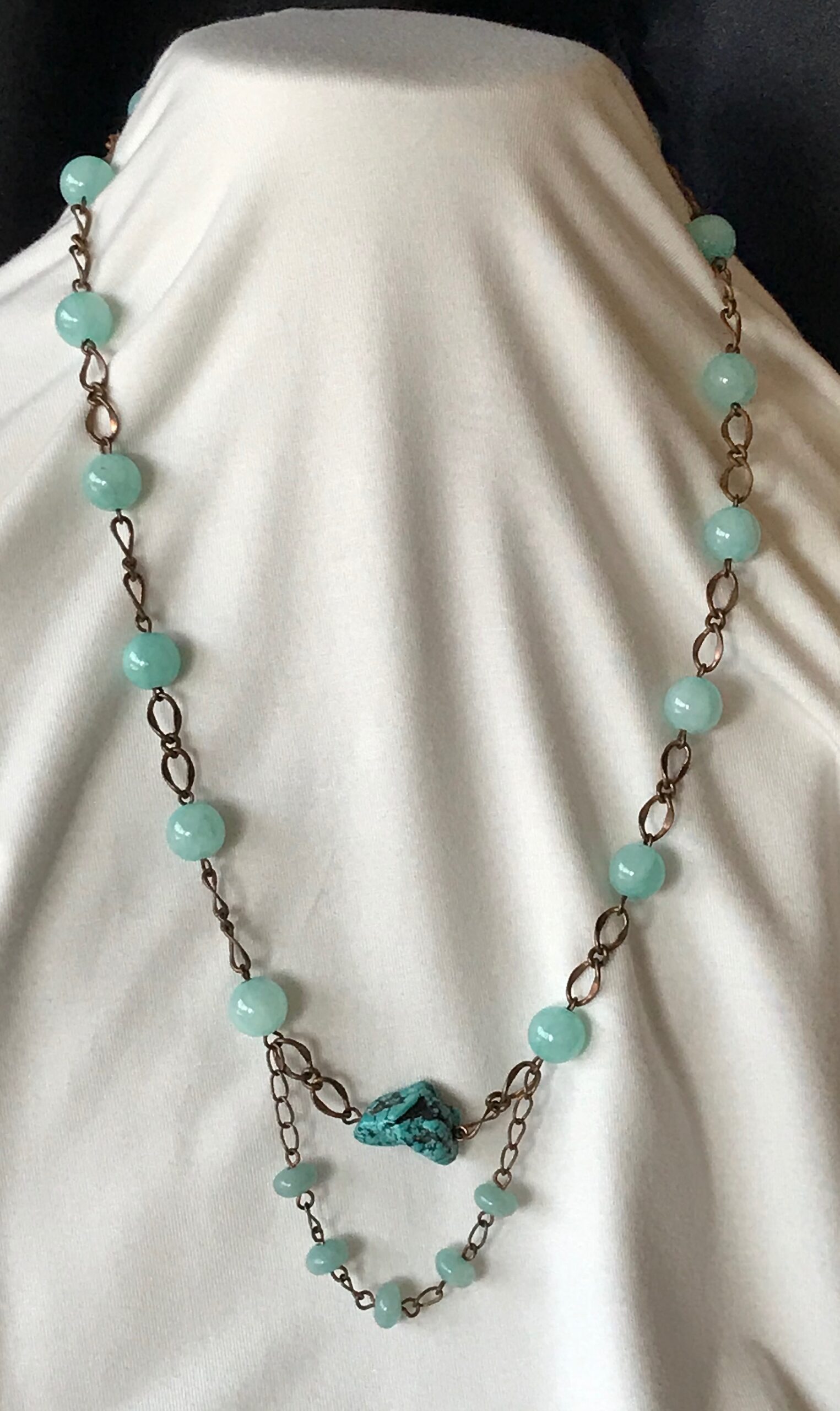 Mint Burmese Jade spread out over chain with Feature Turquoise Rock.