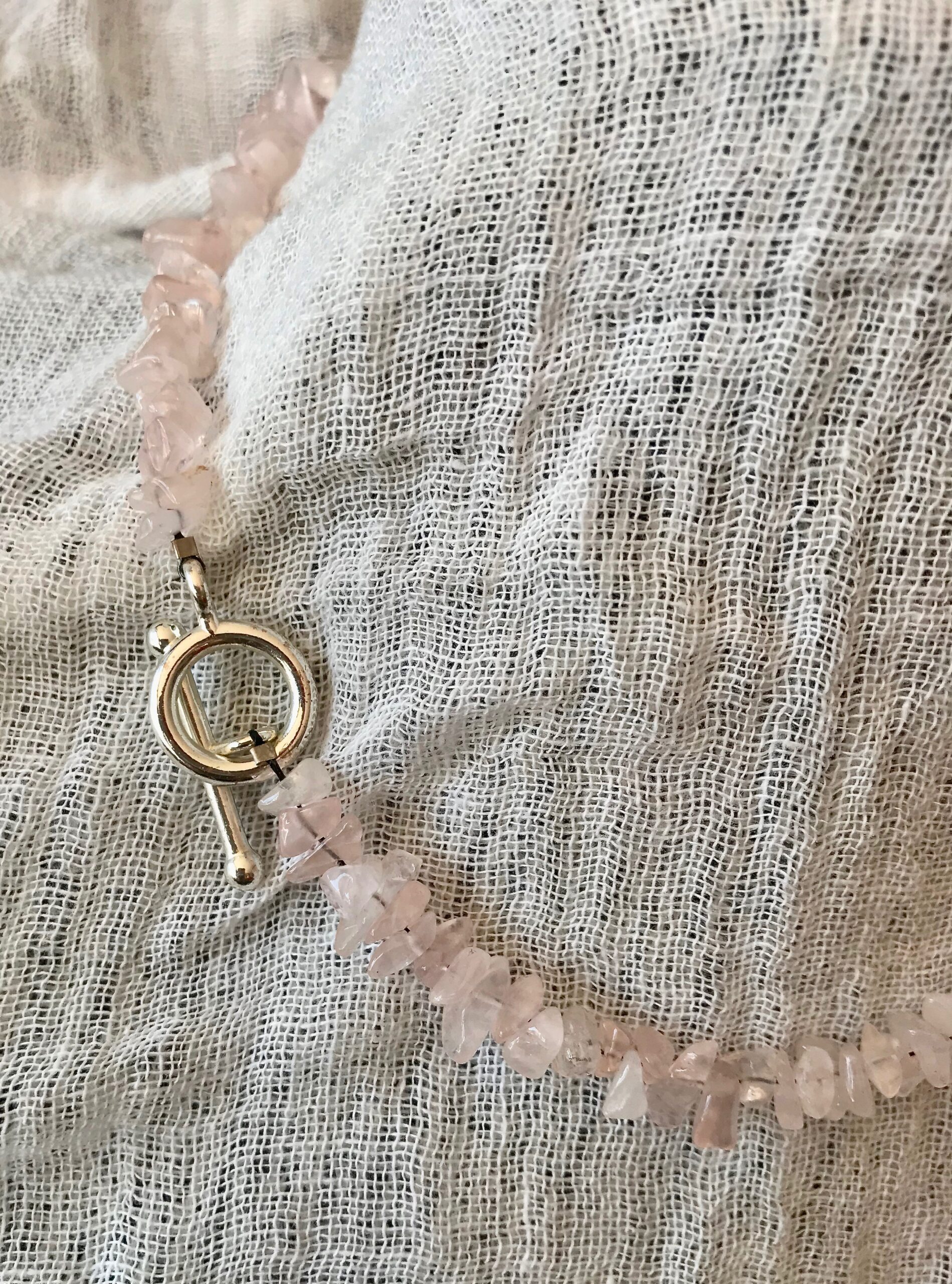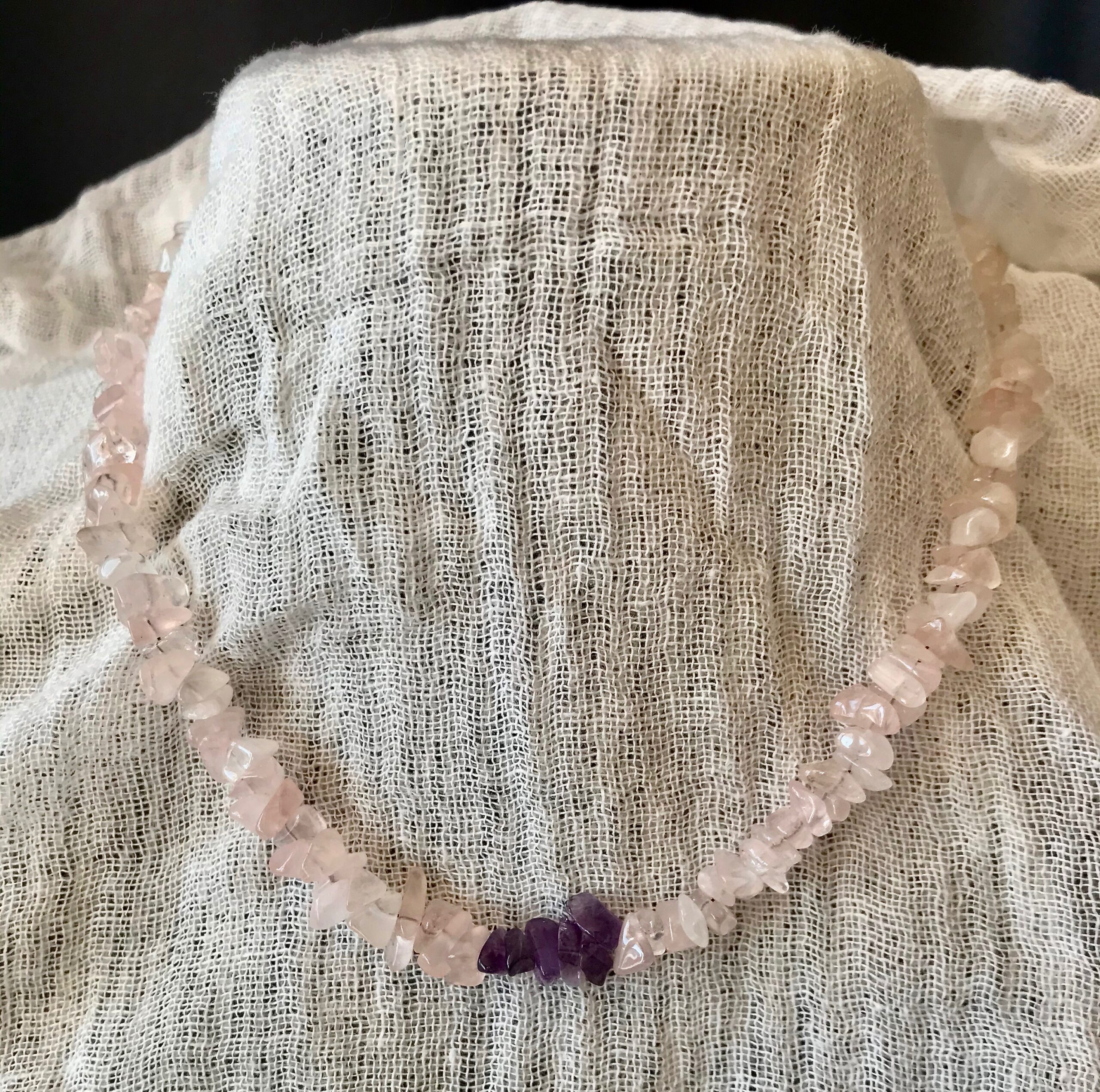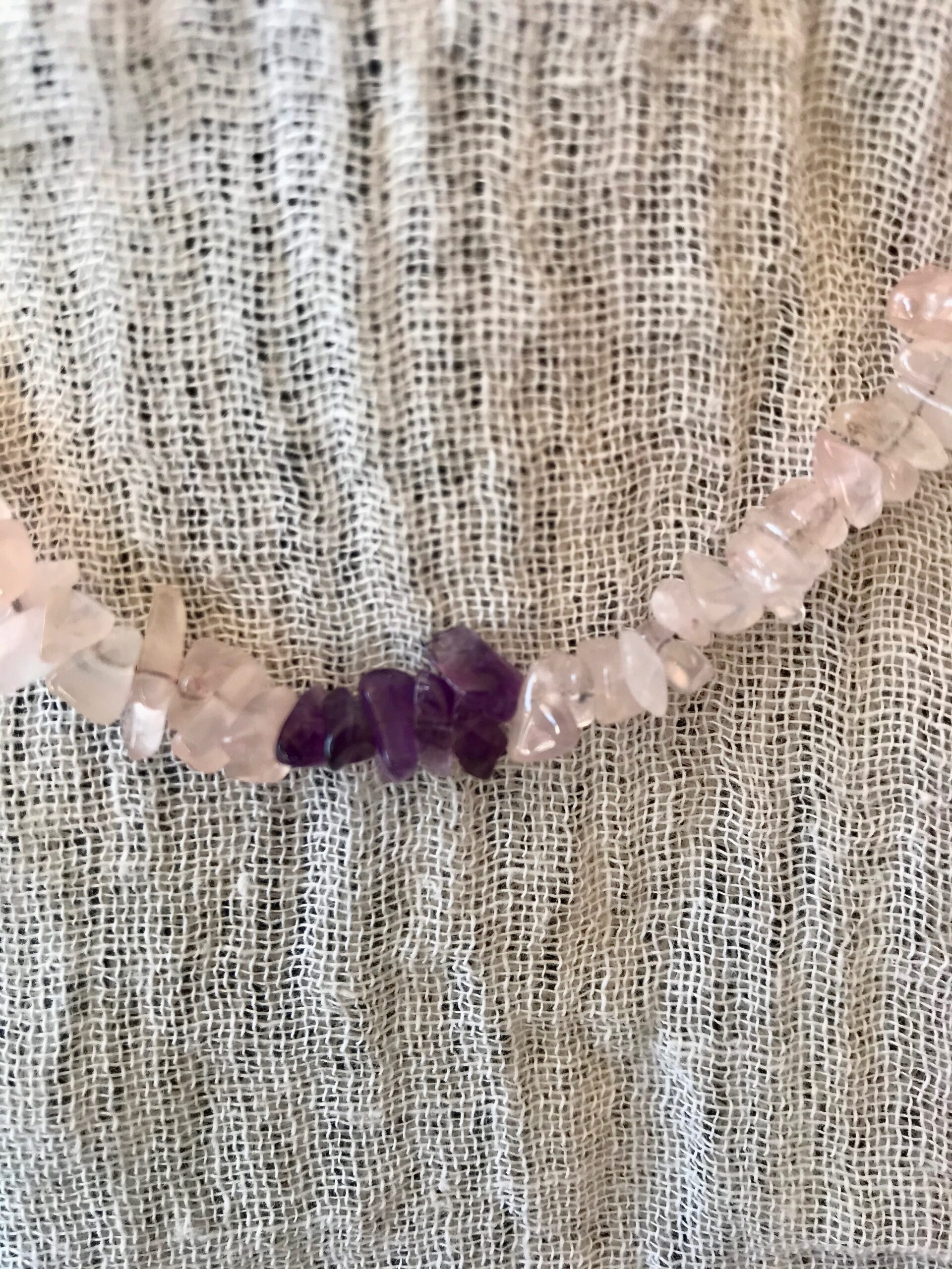 Lovely light chocker made from Rose quartz chips with 4 Featured Amethyst Chips